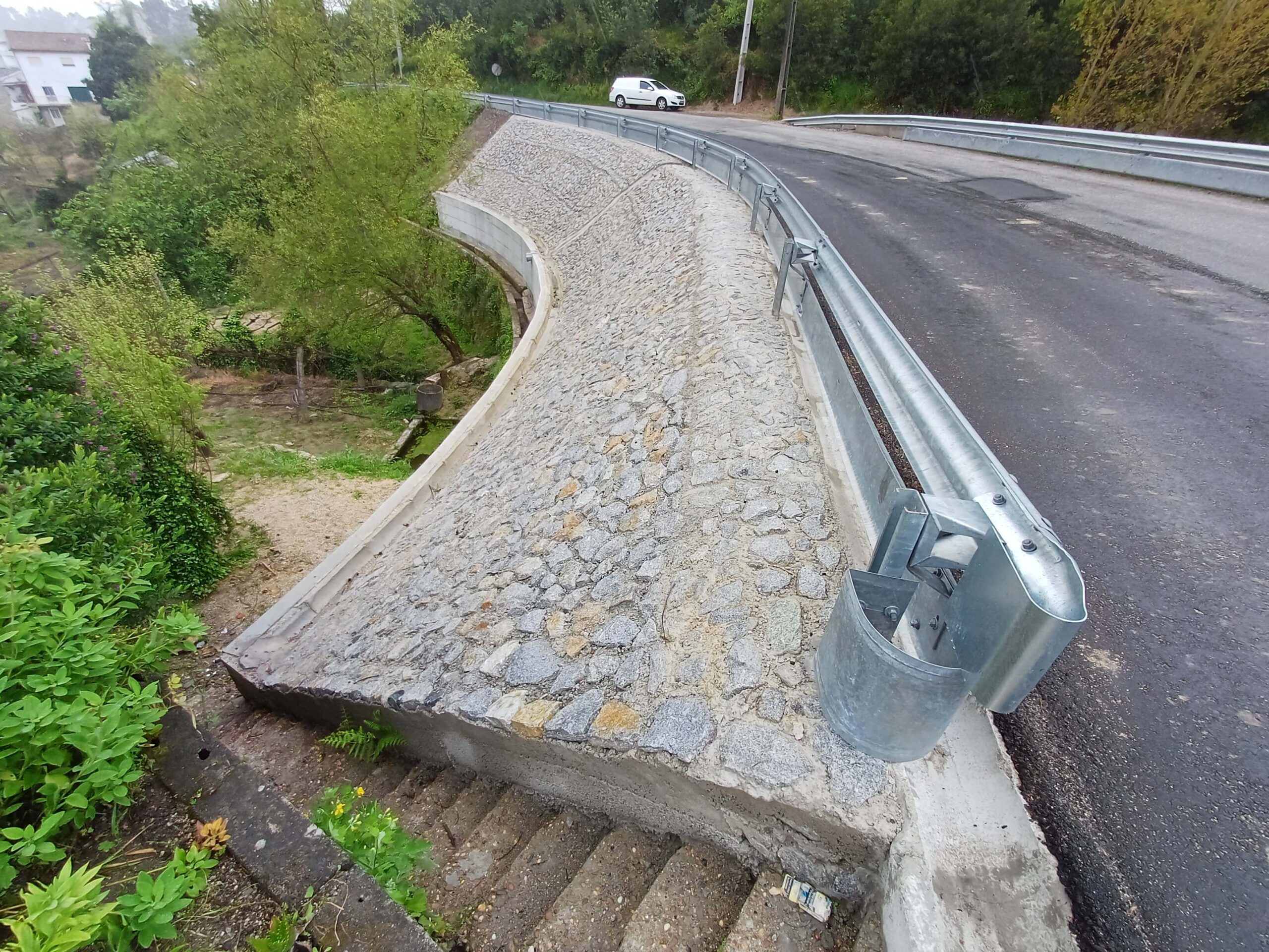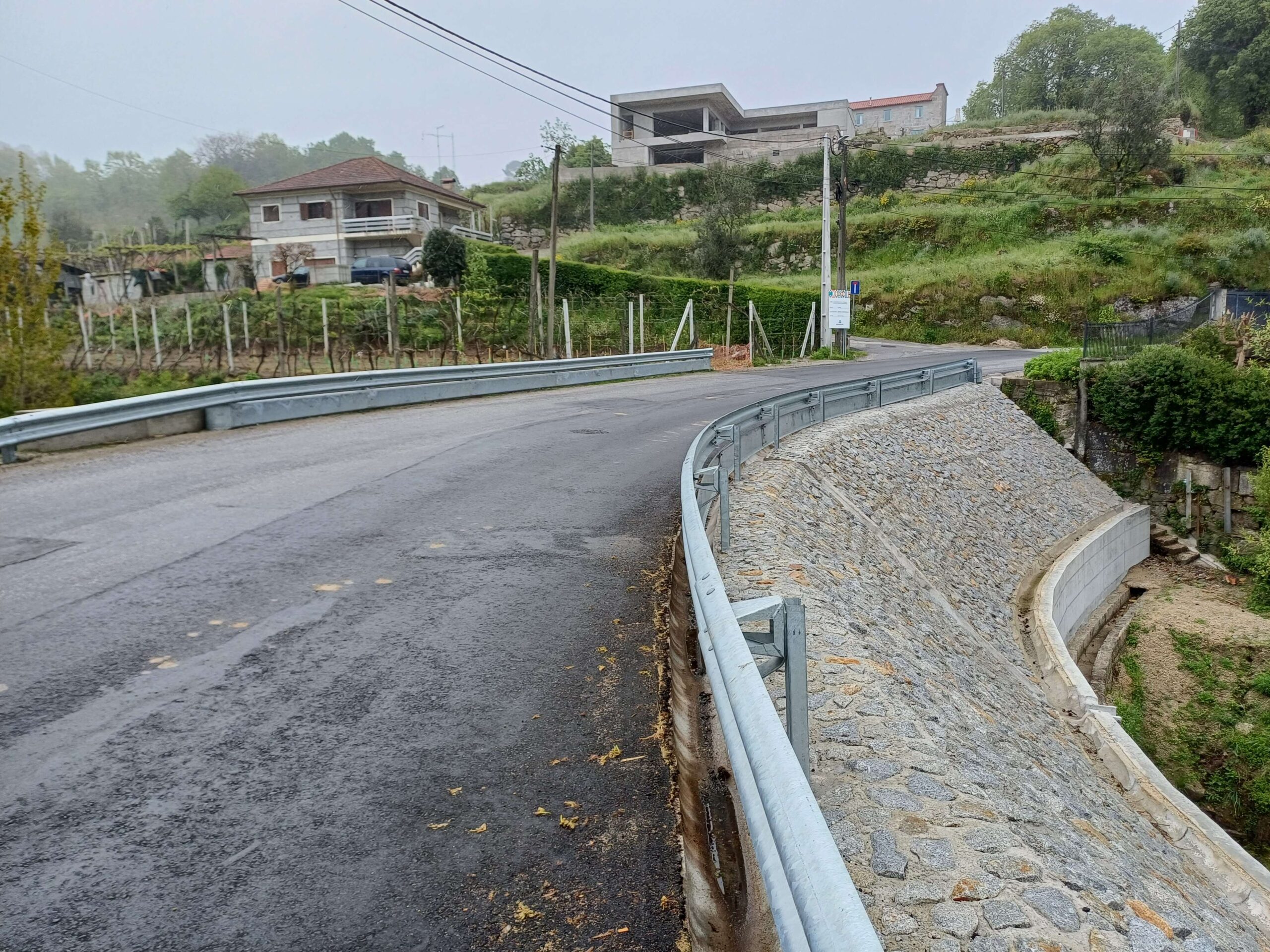 – Pavimentação de metade da faixa de rodagem e instalação Rail de proteção com Guardas metálicas